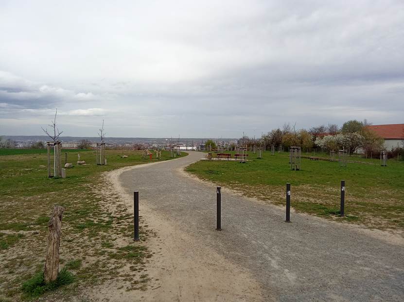 Fernwärmeleitungen verlaufen in Ost-West-Richtung Bitumen- und Plattenwege. Die