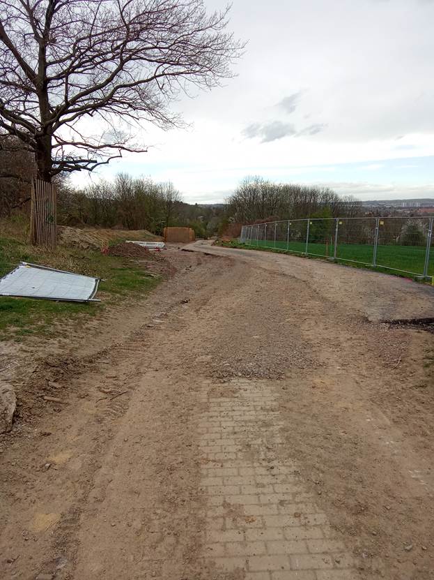 Neue Versorgungsleitung, Wege, Bäume und Sträucher