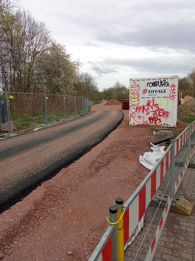 der Bautätigkeit werden für den Fuß- und Radverkehr Umleitungen ausgeschildert.