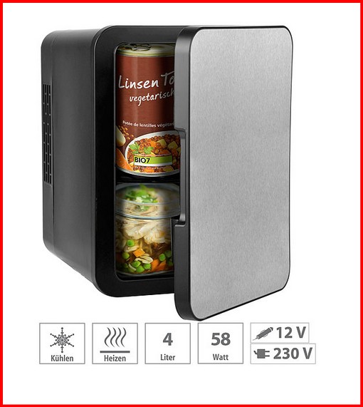 Mini-Kühlschrank mit Warmhalte-Funktion, Edelstahlfront, 12/230 V, 4 l