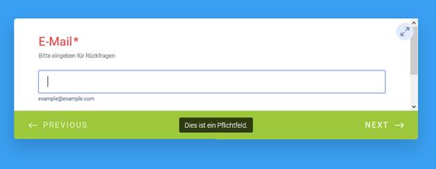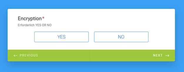 So sehen die Fragen im Formular aus. Sie werden einzeln gestellt