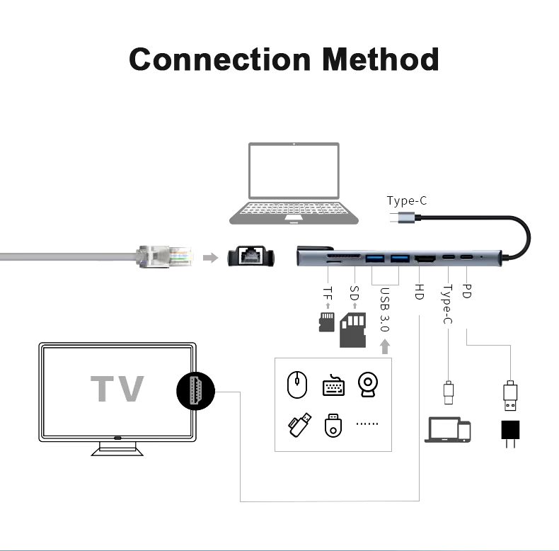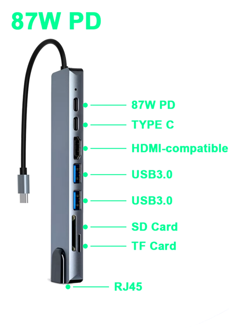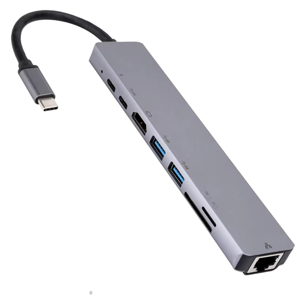 8-IN-1 Adapter 4K HDMI USB 3.0 LAN RJ45 Ethernet Micro SD Kartenleser